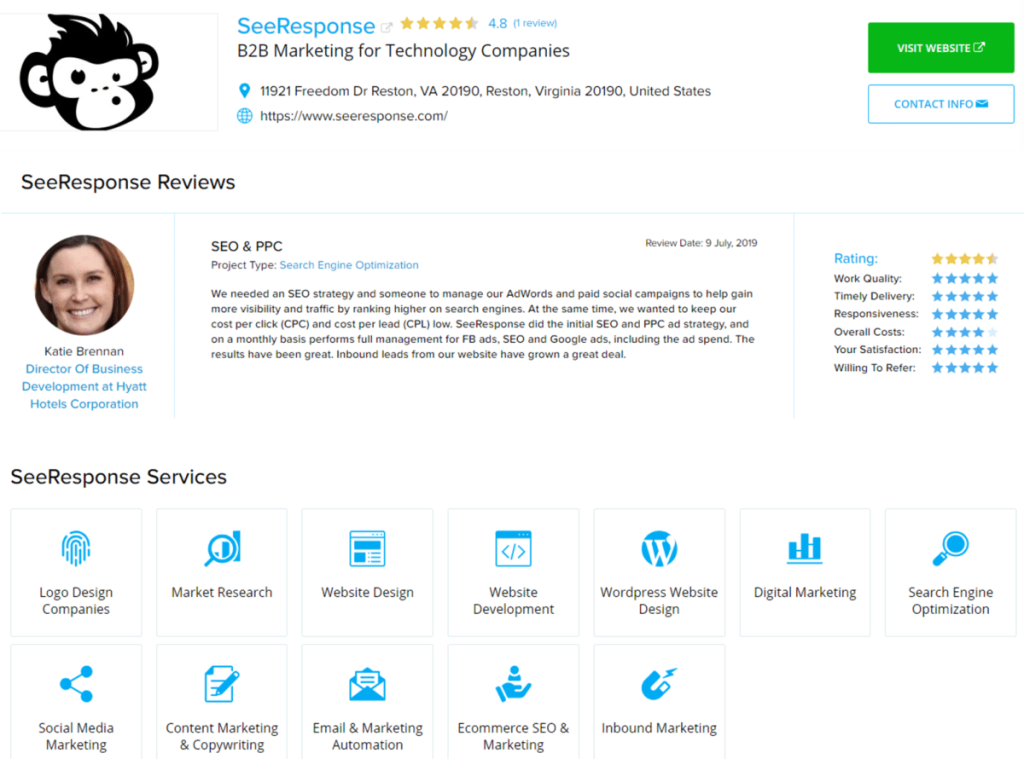 SeeResponse is a full-service technology marketing agency. The company helps its clients increase brand awareness and drive qualified leads. SeeResponse’s expertise spans Email Marketing, SEO, Paid Search, Paid Social, Marketing Automation, Web Designing & Development, CRM, and Creative Services – supported by highly talented B2B technology marketing teams. The company’s key focus is to execute upon top marketing and demand generation channels for the B2B software, internet, and the technology consulting businesses.
